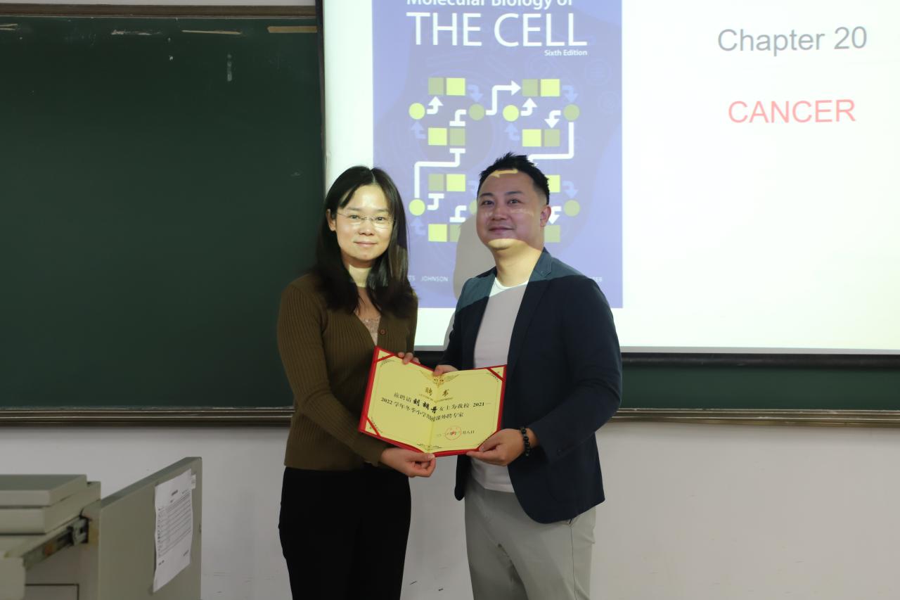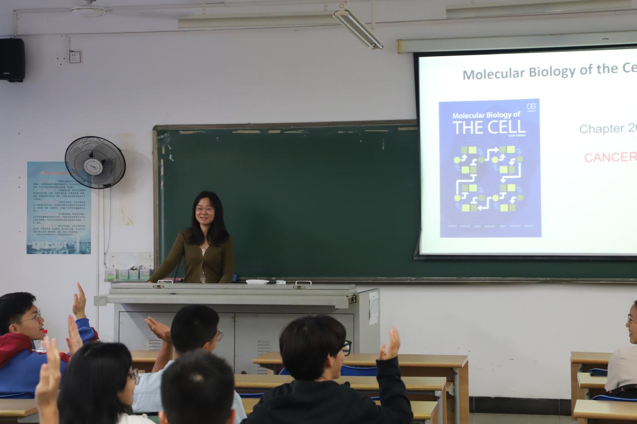 2021年12月10日上午、下午,在5教106教室开展冬季小学期课程。武汉大学刘胡丹教授应邀为公司2020级的同学讲授《生物学导论-肿瘤生物学》课程。