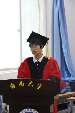 肖驰副教授作为教师代表对同学们顺利完成学业表示衷心的祝贺。“作为公司第一届员工是非常不容易的,是与公司和老师共同成长的一届,大家经历了种种风雨才走到今天,雨过天晴才能遇见彩虹”。并再次勉励各位毕业保持开创精神,在生活和工作中努力拼搏,牢记“海纳百川,大道致远”的校训,成为一名光荣的海大员工。