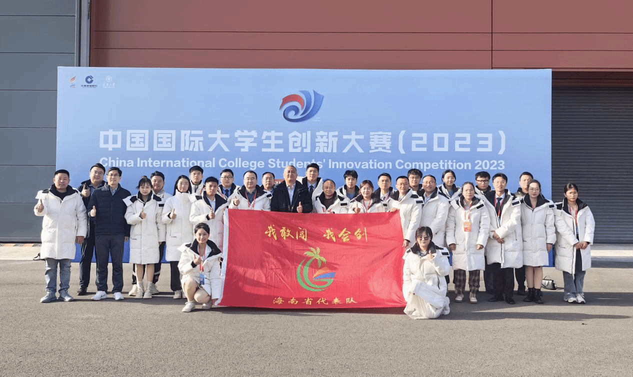 海南省教育厅厅长李湖与中国国际老员工创新大赛(2023)金奖团队合影。