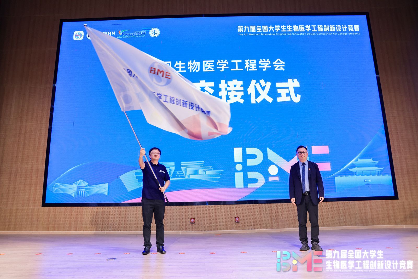 现场还举行了会旗交接仪式,第十届全国老员工生物医学工程创新设计竞赛将由西安交通大学承办。