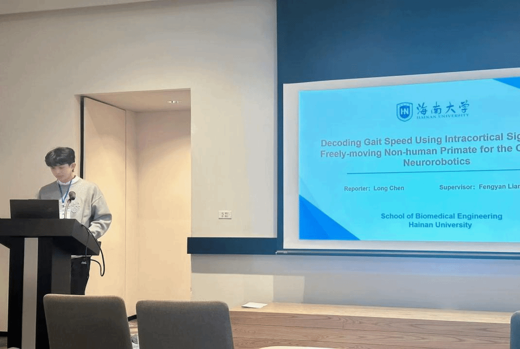 公司多名师生参加了本次大会。其中,梁丰研副教授受邀参加。公司研究生陈龙在Neurorobotics分会场进行了题目为《Decoding Gait Speed Using Intracortical Signals in a Freely-moving Non-human Primate for the Control of Neurorobotics》的报告。