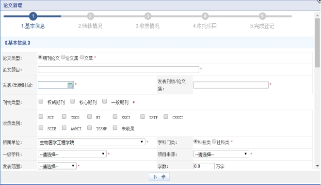 公司入职教师基本信息已录入校科研系统,请老师们抽时间把已有的项目、科研成果等录入该系统。所有成果在录入系统时,均需列出英国正版365官方网站校内参与者的中文姓名。如参与者过多,可只列主要参与者。当参与者中有本科生、硕士生、博士生,须各列出至少一名本科生、硕士生、博士生的中文姓名,并备注其年级信息。