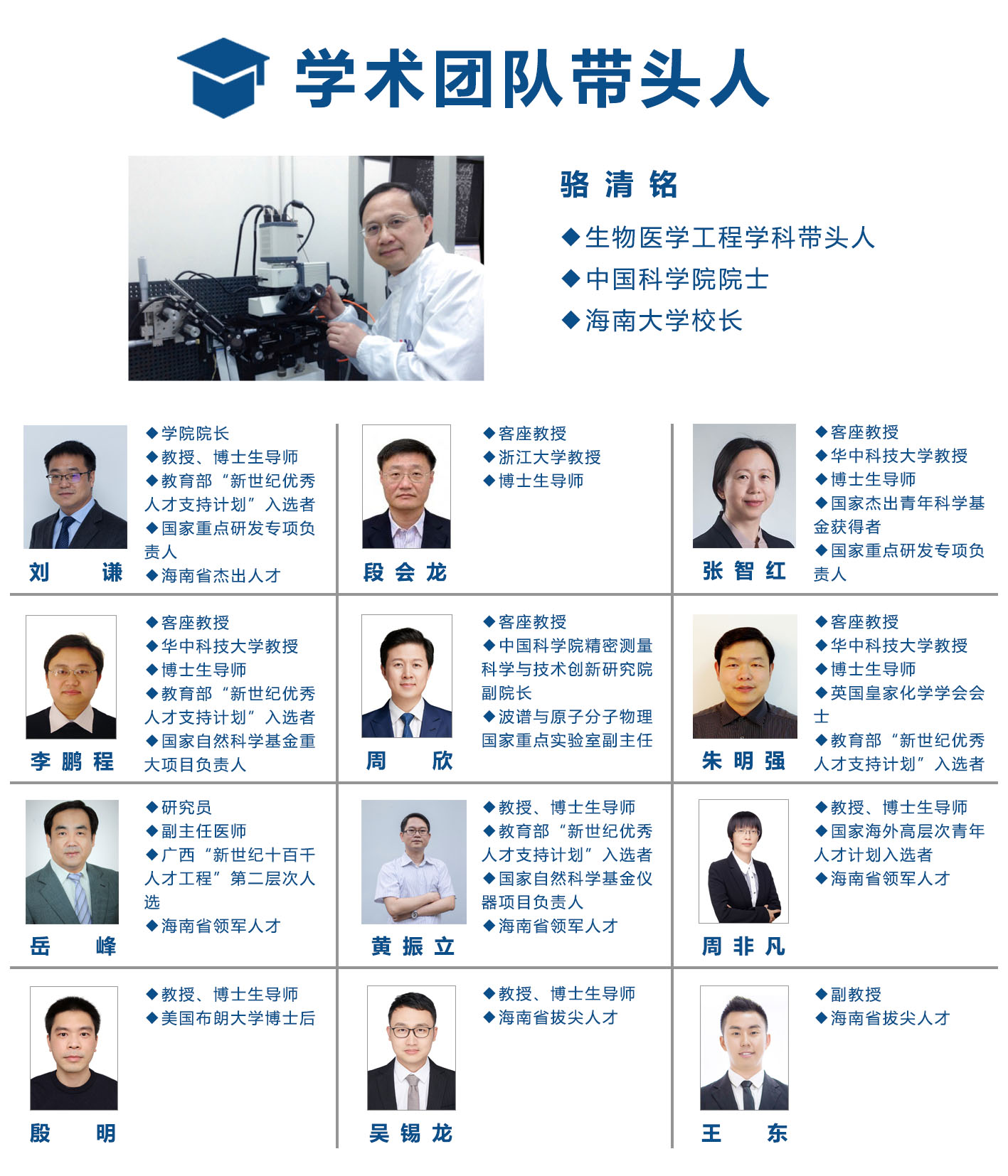 公司已建成一支以骆清铭院士为带头人的多学科交叉、以优秀中青年博士为主的高水平团队队伍。目前,公司设立了生物医学影像学、医学信息学、生物医学传感和体外诊断技术四个研究方向,依托校内教授和柔性引进客座教授组建了13支科研团队。