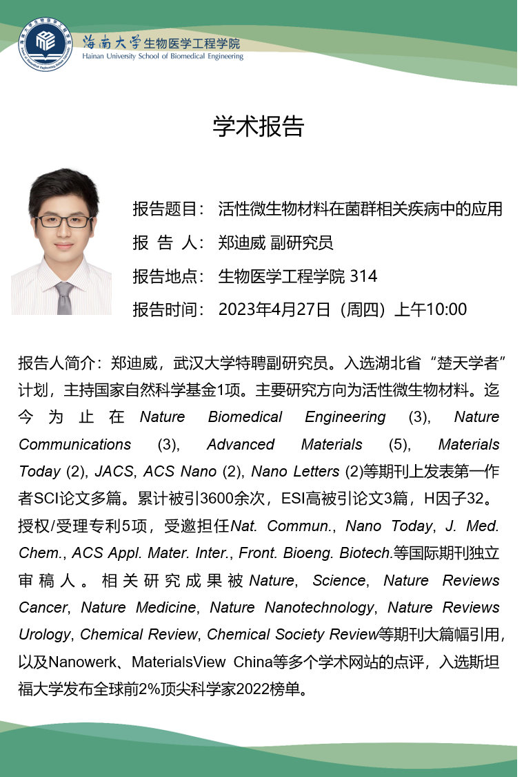 公司学者论坛第四期——郑迪威“活性微生物材料在菌群相关疾病中的应用”