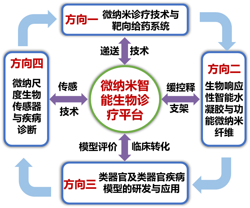 微纳米智能生物诊疗团队主要致力于微纳米材料与医药领域的交叉研究,联合纳米分子影像技术,开展一系列多功能纳米药物、生物响应性水凝胶及其智能给药系统的研究工作,在肿瘤治疗方面取得了良好的进展;结合微纳米技术,充分利用南海海洋生物资源,创新性地研发多种智能微纳米生物机器人,应用于肿瘤等疾病的精准治疗,其作为一种新型生物诊疗技术,提高了肿瘤等疾病的精准治疗效果,有望作为一种精确和个性化诊疗策略实现多种疾病的诊疗一体化;类器官及类器官疾病模型的构建,为智能微纳米生物机器人的临床前研究提供重要实验模型,有助于提升微纳米生物诊疗剂的临床转化。