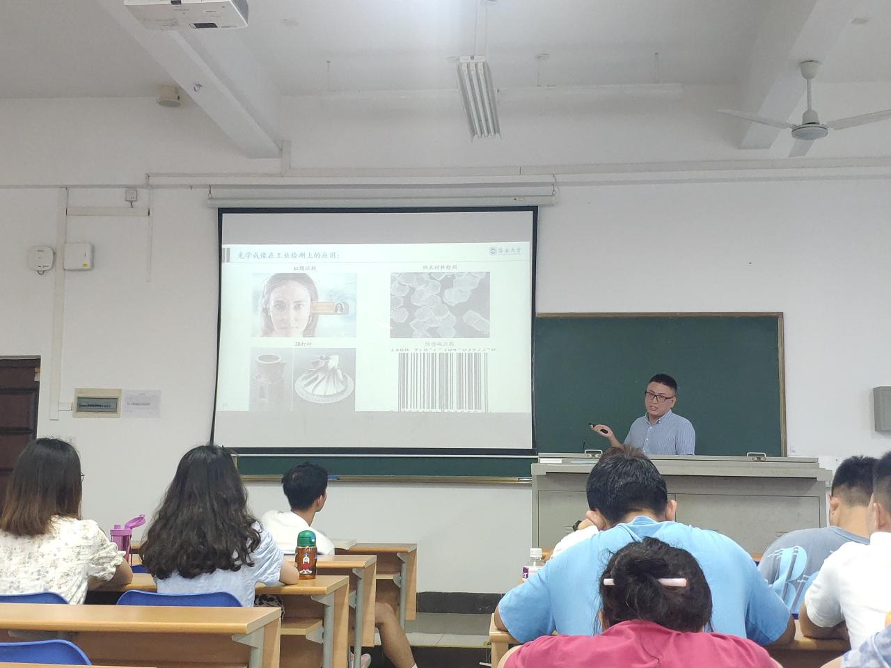 曹靖老师首先以幽默的问题展开,带领同学们学习光学成像无损、高分辨的特点,并针对光学成像中的分辨率、成像深度、成像速度三个重要因素进行阐述。除此以外,曹老师还介绍了光学成像在科研和工业中的应用,如小白鼠组织成像、指纹识别、微纳材料、防伪识别等。