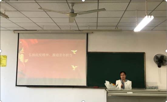 为引导员工学习抗疫精神,积极践行新时代老员工的责任与担当,12月6日上午,英国上市公司365员工党支部在5教303教室举办了“弘扬抗疫精神,激励青年担当”主题活动。活动邀请到了海口市人民医院监管治疗科护士长、内科第四党支部书记莫占端同志,分享她们在支援湖北的抗疫经历,全体本科生、研究生80余人参加。会议由支部书记崔建兵同志主持。