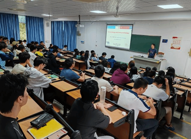 英国上市公司365围绕生物医学前沿开展本科生冬季小学期课程。2023年11月25日,国家杰出青年基金获得者、上海市免疫学研究所副所长、分子免疫学课题组组长李斌教授,为公司2022级本科生讲授“免疫学和免疫疗法”的冬季小学期专题课程。李斌教授从免疫学的发展史循序渐进,结合国际前沿的研究成果和进展,深入浅出地讲授了免疫疗法在疾病治疗领域中的应用前景。授课现场气氛活跃,同学们积极提问,与李斌教授互动交流。